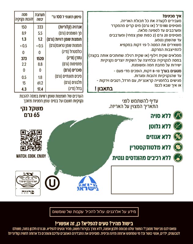 • בקנייה מעל 165 ₪ – בסיס להכנת נקניקיות טבעוניות ב־10 ₪ בלבד עד סוף החודש