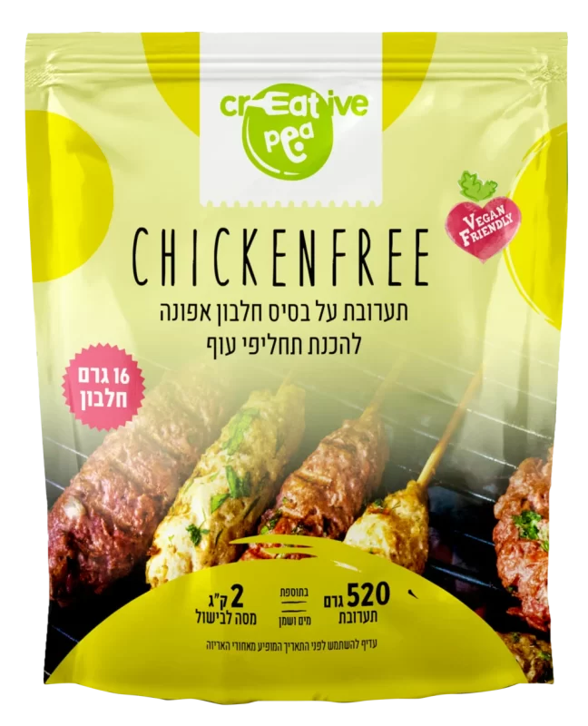 תערובת תחליף העוף הייחודית של CHICKENFREE על בסיס חלבון אפונה הינה תערובת חזקה בטעמיה, ומתאימה עצמה למנות “עוף” מגוונות כגון: קציצות עוף, קבבוני עוף, צ’יקן נאגטס, שניצל, קבבים, ממולאים, רביולי ועוד.